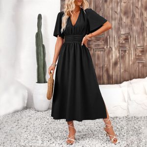 Women’s Ruffle Sleeve Split Elastic Waist Polyester Dress