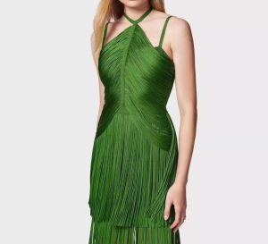 Green Halter Spaghetti Straps Tassel Dinner Ball Dress